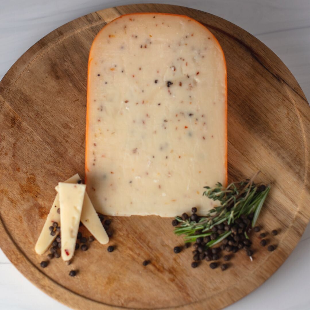 Raw cow's milk, culture, black pepper mix (black pepper, paprika, onion, coriander, allspice, rapeseed oil), enzymes, salt.