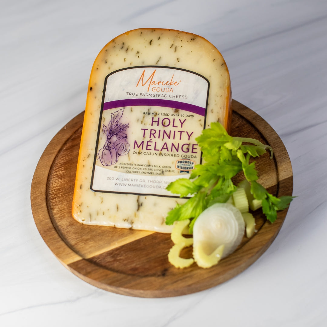 An aromatic flavor base similar to mirepoix that swaps out the carrot for the sweeter, more mellow green bell pepper. All Marieke® Gouda is made using fresh raw milk from our family farm. We handcraft each wheel with the finest Old World techniques and age the Gouda to perfection on Dutch Pine Planks for a minimum of 60 days.