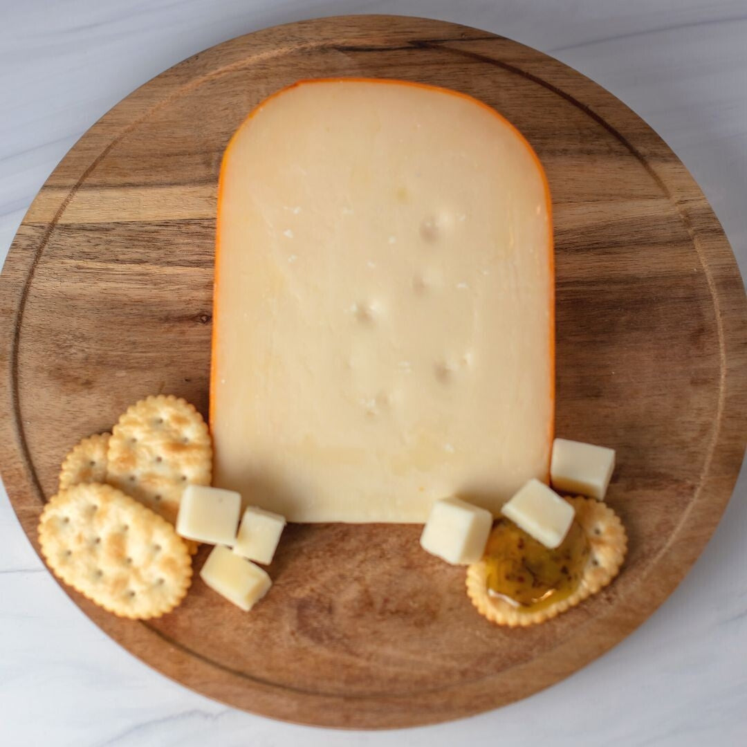 Flavors reminiscent of butterscotch create a feeling of child-like wonder. Crystals flake the cheese showing off it's perfectly aged composition. All Marieke® Gouda is made using fresh raw milk from our family farm. We handcraft each wheel with the finest Old World techniques and age the Gouda to perfection on Dutch Pine Planks.